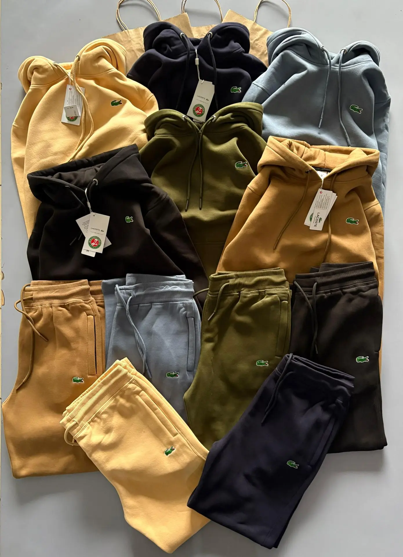 Premium Co-ord Sets – Iconic Comfort, Effortless Style-Elevate your loungewear game with our co-ord sets, designed for all-day ease and clean style. These sets feature soft fleece hoodies paired with matching joggers, each embroidered with the signature Lacoste crocodile logo. From muted pastels to earthy mustards, olives, and classic blacks – this range offers something for every mood and look. Perfect for travel, streetwear, or cozy indoor vibes – these co-ords combine premium quality with laid-back sophistication.