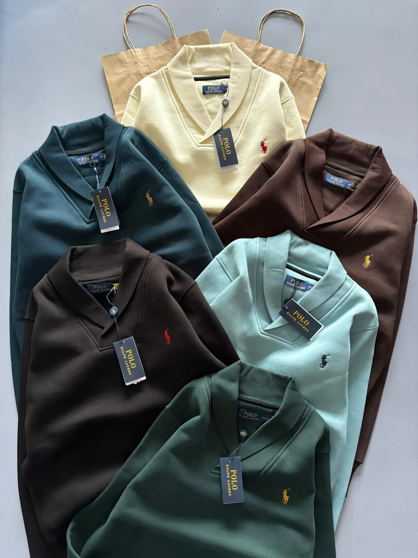 V-Neck Sweatshirts – Sophistication in Every Stitch-Introducing our new Polo V-Neck Sweatshirt Collection — a perfect fusion of comfort and class. Crafted from premium fleece with a tailored V-neckline, these sweatshirts bring a sharp twist to casualwear. Featuring the iconic Polo Ralph Lauren logo embroidery, they’re available in timeless hues like forest green, ivory, mocha brown, charcoal, teal, and powder blue.